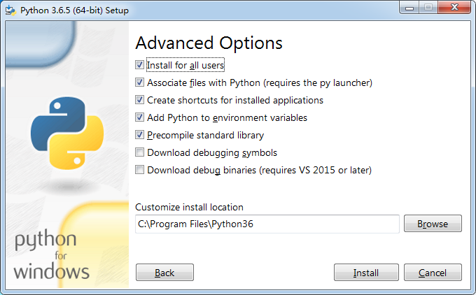 勾选Add Python 3.6 to PATH。选择Customize installation安装。