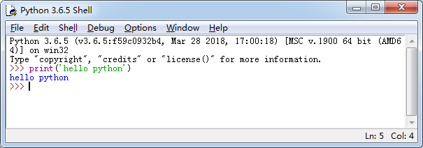 开始菜单-〉Python3.6-〉IDLE(Python 3.6 64-bit) 在>>>指令操作符下可以输入python脚本,常用语初学者学习基础语法。