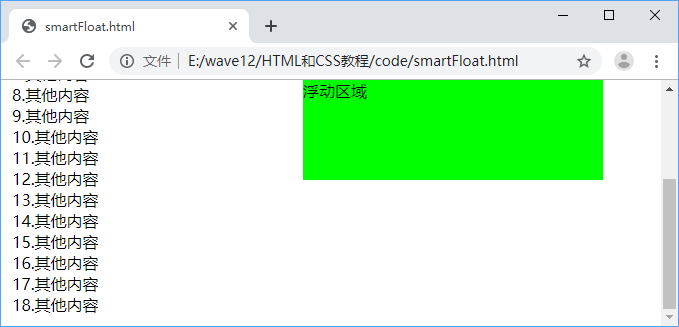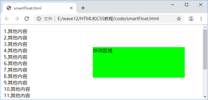 当页面滚动后,浮动区域不会超出顶部,但其他内容照常往上滚动。